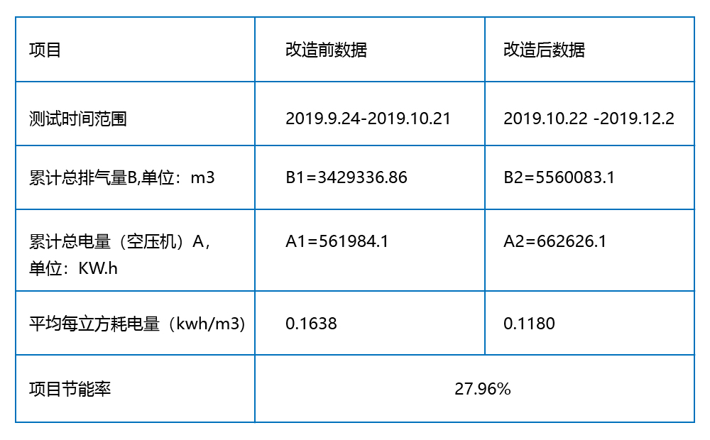 改造后经过了两周的运行,我司的系统产品发挥了稳定的作用,目前整个系统的节能效果十分显著。下表格是节能数据参照表: